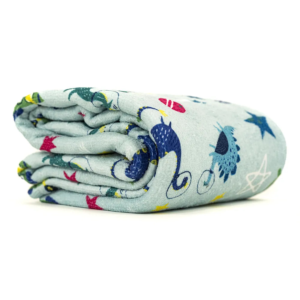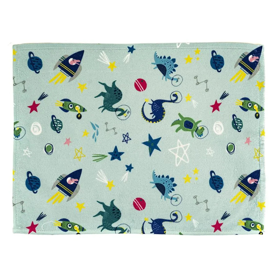 מגבת ילדים עם דינוזאורים בחלל מתאימה בצורה מושלמת לחוף, בריכה או כמגבת יומיומית בחדר האמבטיה. המגבת הגדולה בצבע בז' עבור ילד היא פתרון טוב לטיולים עקב יכולות הייבוש היעילות שלה. המגבת סופגת מים באופן מצוין. ההדפס על המגבת נעשה בשיטת סאבלימציה דו-כיוונית, מה שמבטיח עמידות וחוסם את ההדפס בצורה שאין אפשרות לתחושתו במגע. הצד הפנימי (ללא הדפס - לבן) עשוי 100% כותנת פרוטה, והצד החיצוני (עם הדפס) עשוי מיקרופייבר. מידות: 70 × 140 ס"מ.
