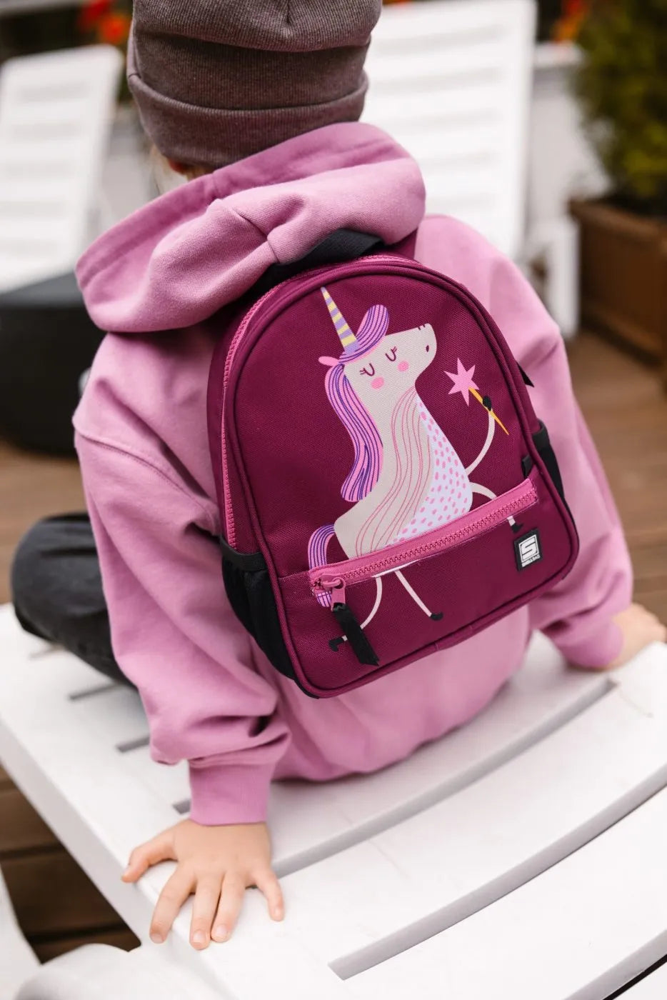 תיק גב מרהיב בצבע סגול עם הדפס חד קרן מיוחד, המשלב קסם ודמיון עם פונקציונליות מעולה לכל הרפתקאות היומיום