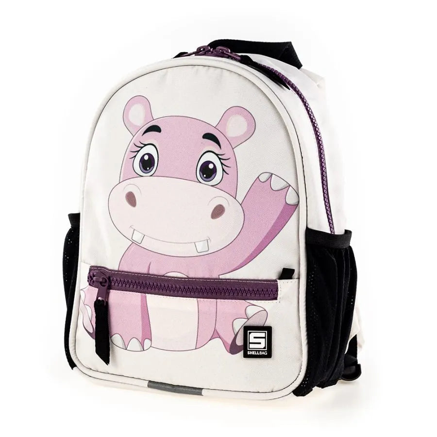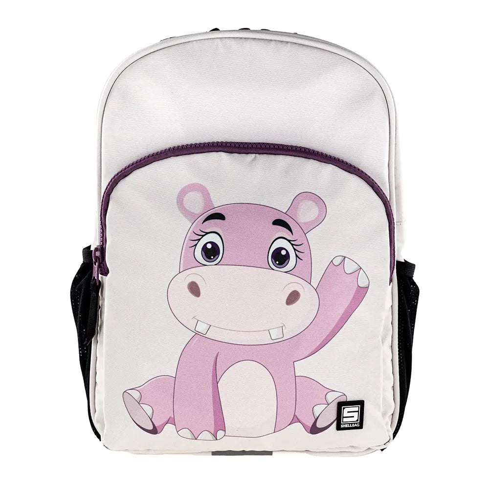 תיק לגן ורוד בהיר עם הדפס היפופוטם